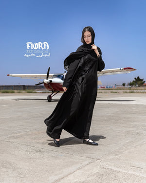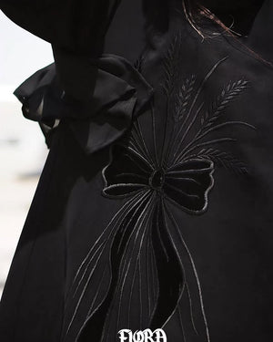 Crafted from a light, flow fabric and adorned with a minimal wheat-cluster embroidery tied gracefully with a ribbon motif — a symbol of beauty in simplicity. 🌾🖤
